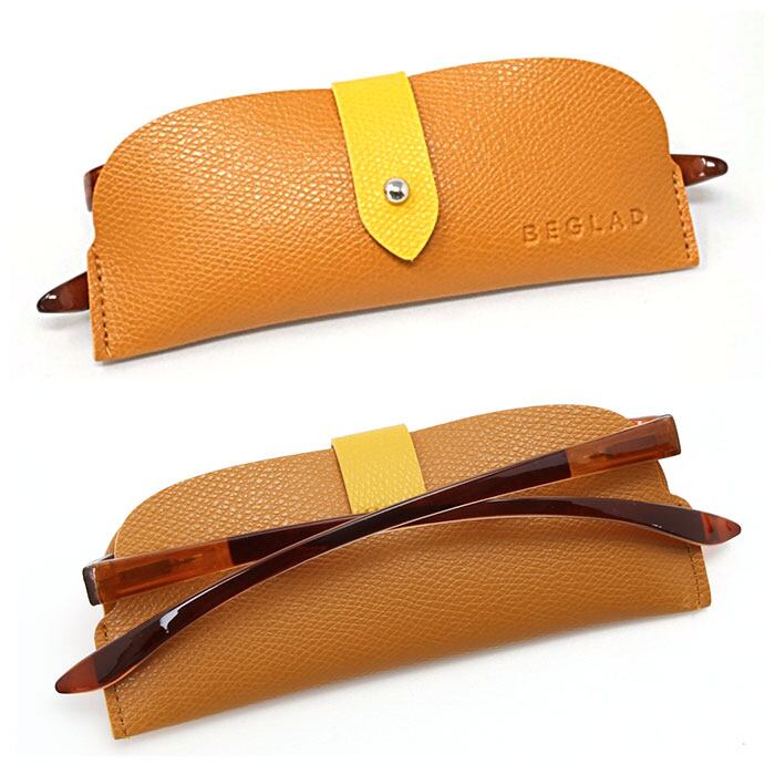 ・シボ感のある、優しい触り心地のPUレザーを使用したケース付きで、持ち運びに便利。テンプルを出して収納することで、レンズをしっかりカバー!