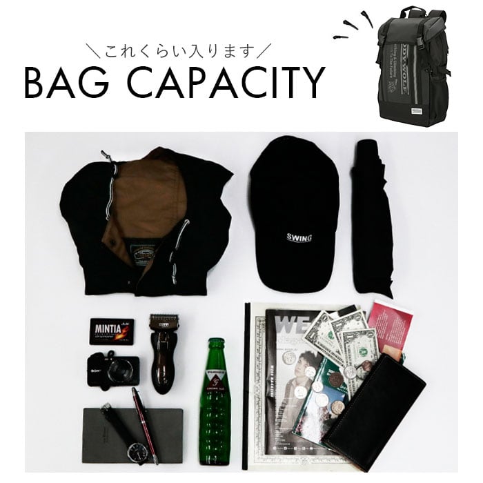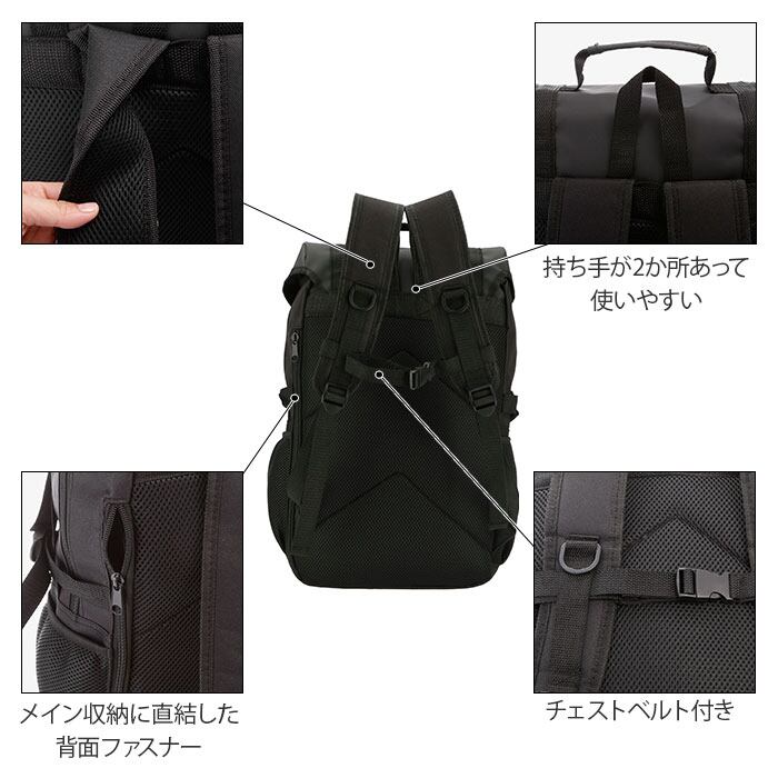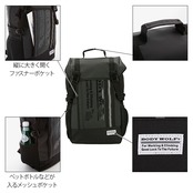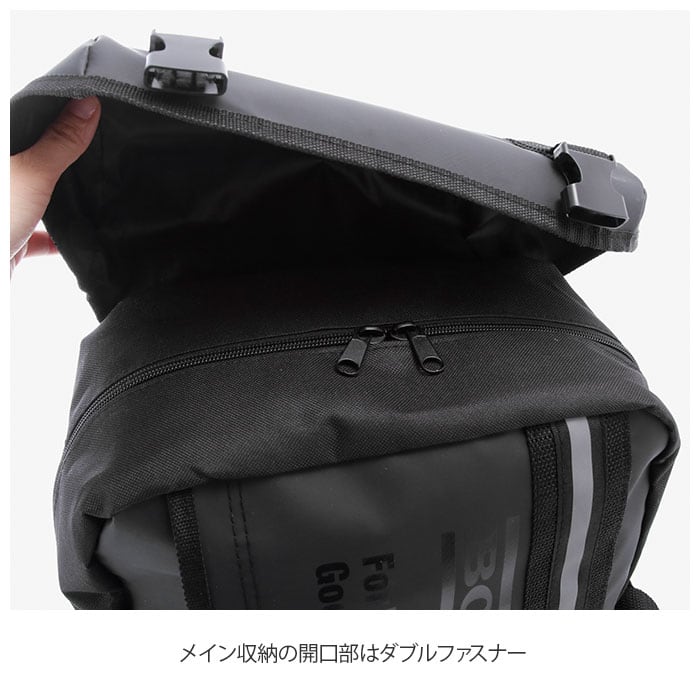・上部のフラップやフロントの表面には、水に強いコーティング加工。