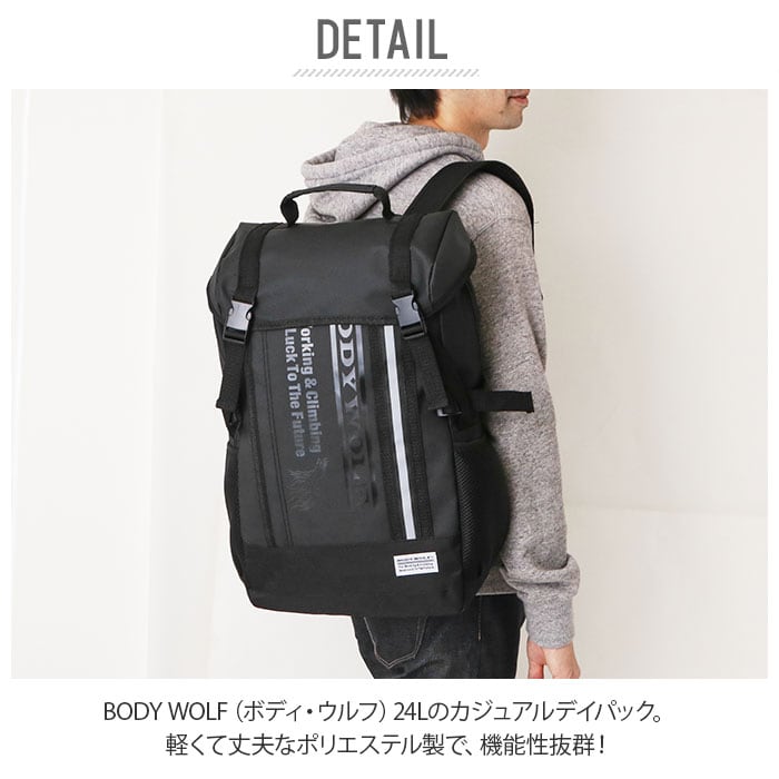 ・軽くて丈夫なポリエステル製で、機能性抜群!BODY WOLF(ボディ・ウルフ)24Lのカジュアルデイパック。