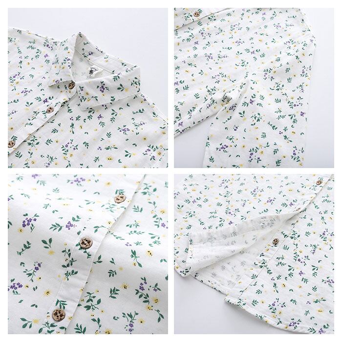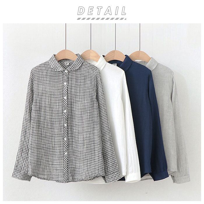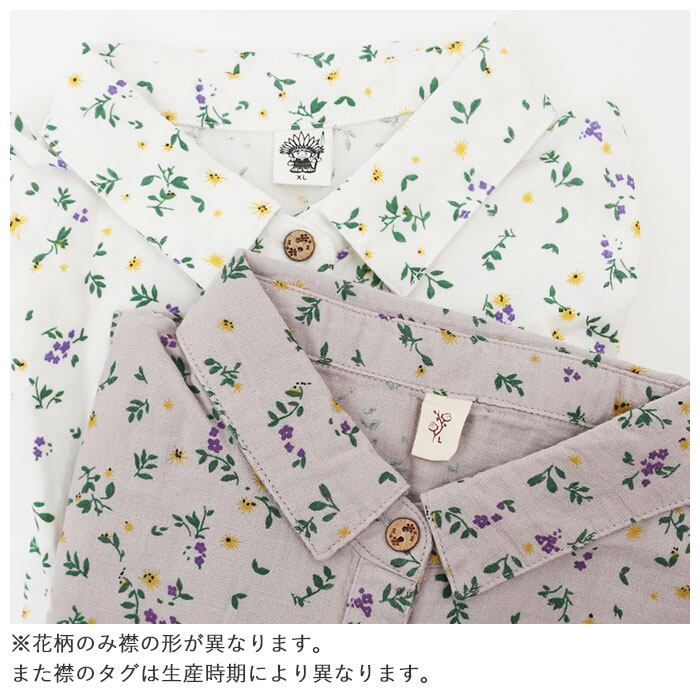 ・無地とギンガムチェックは、丸い襟元が優しい印象のラウンドカラーのデザイン。花柄はきちんと感のあるレギュラーカラーデザイン。