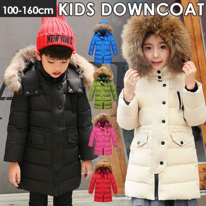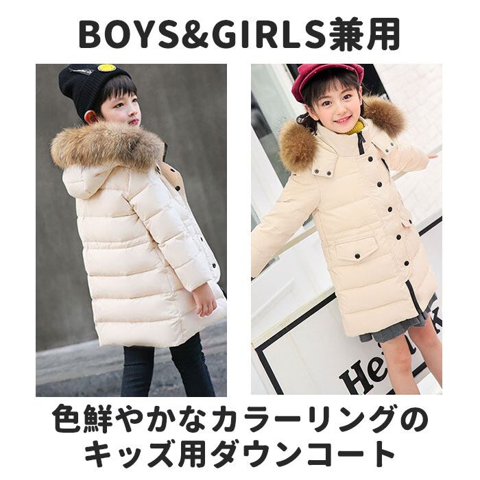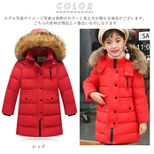 ・モコモコであったかいフェイクファー付き♪色鮮やかなカラーリングのキッズ用ダウンコート!