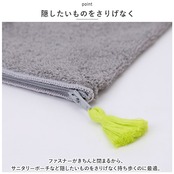 ・ファスナーがきちんと閉まるから、サニタリーポーチなど隠したいものをさりげなく持ち歩くのに最適。