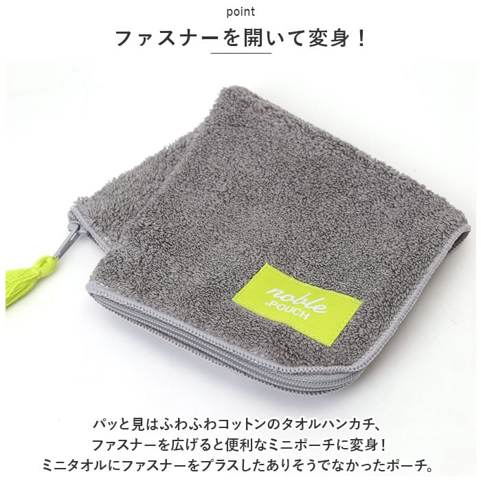 ・パッと見はふわふわコットンのタオルハンカチ、ファスナーを広げると便利なミニポーチに変身!どっとポーチは、ミニタオルにファスナーをプラスしたありそうでなかったポーチ。