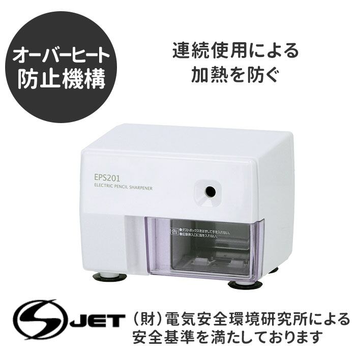 ・削り上がると自動的に働く「ムダ削り防止機構」。ダストボックスを引き出した状態では作動しない「安全オートストッパー」。連続使用による加熱を防ぐ「オーバーヒート防止機構」の3つの機構付きで安心安全の電動シャープナー。