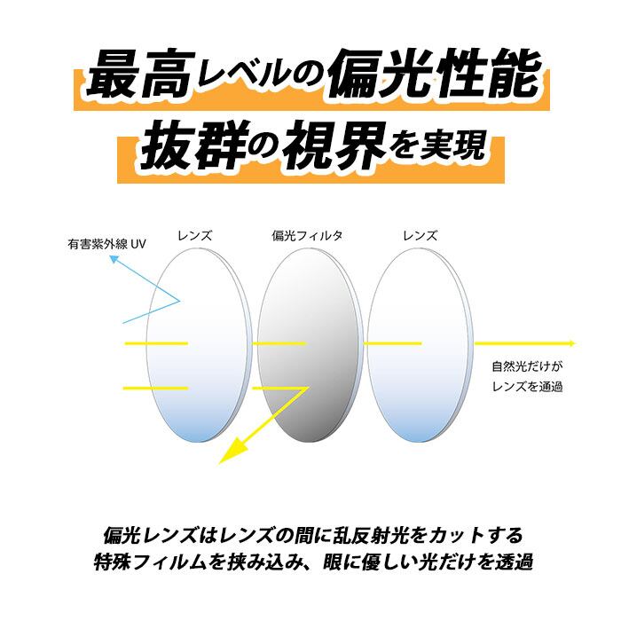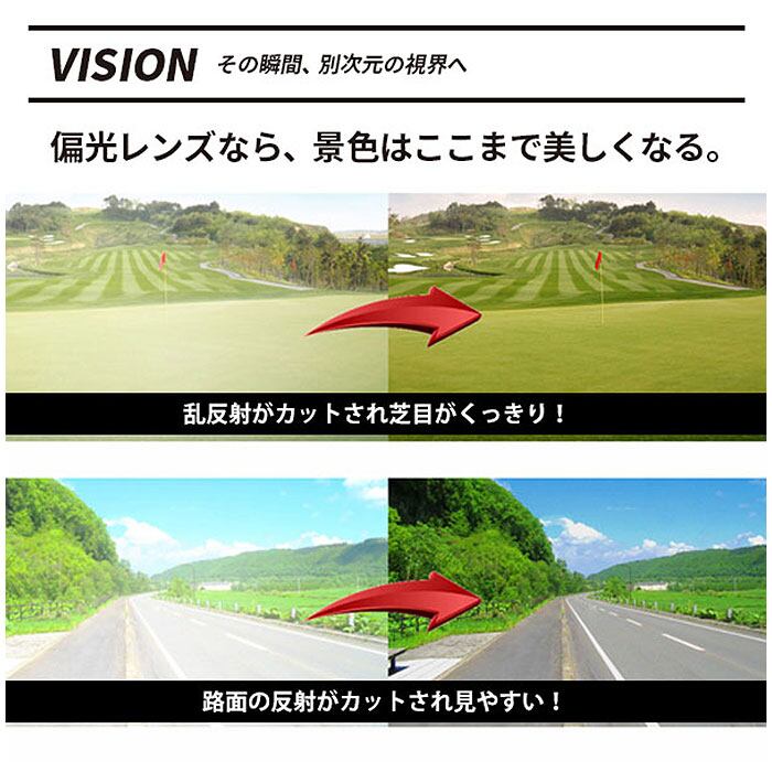 ・まぶしい乱反射をカットする偏光レンズを採用。最高レベルの偏光度99%で、裸眼では見えないクリアな視界を実現。