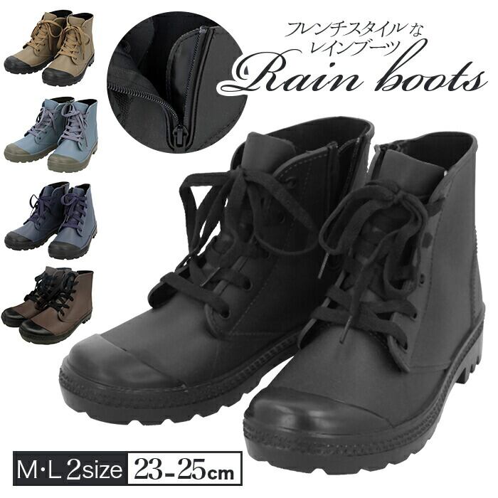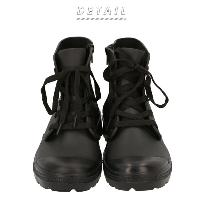 ・シューレース(靴ひも)仕様のデザインがとってもお洒落なレインブーツ。