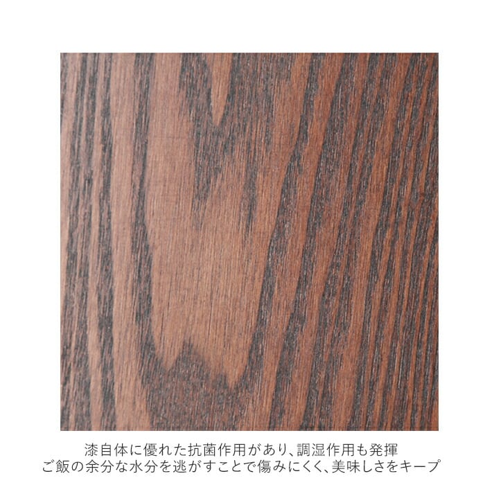 ・漆自体に優れた抗菌作用があり、調湿作用も発揮。ご飯の余分な水分を逃がすことで傷みにくく、美味しさをキープ。