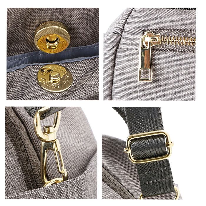 ・メイン開口部は大きく開きやすいダブルファスナー仕様。女性らしいゴールドカラーが上品さを演出。