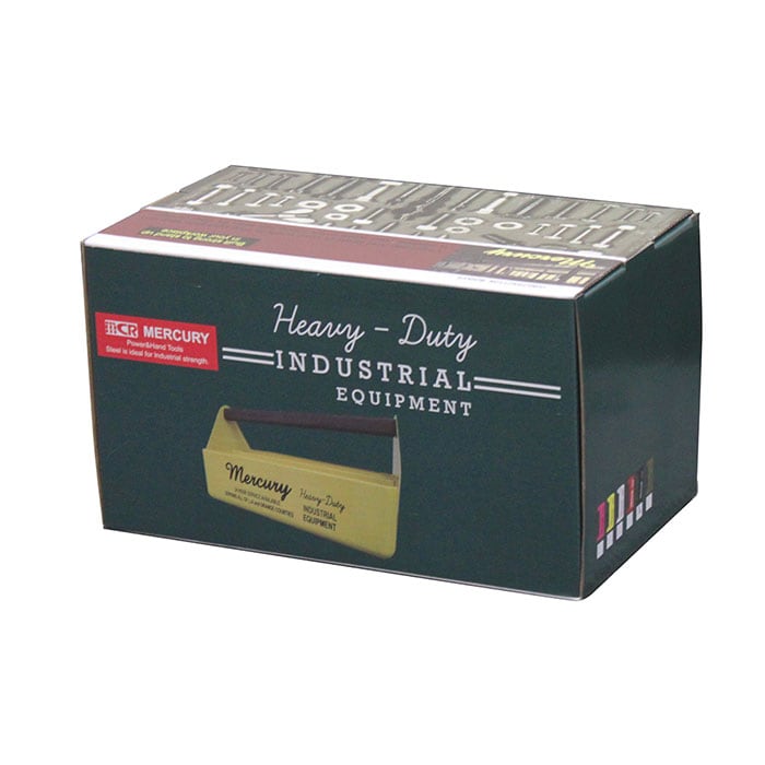 ・持ち運びに便利なウッドハンドルがついたマーキュリーのハンディツールボックス。