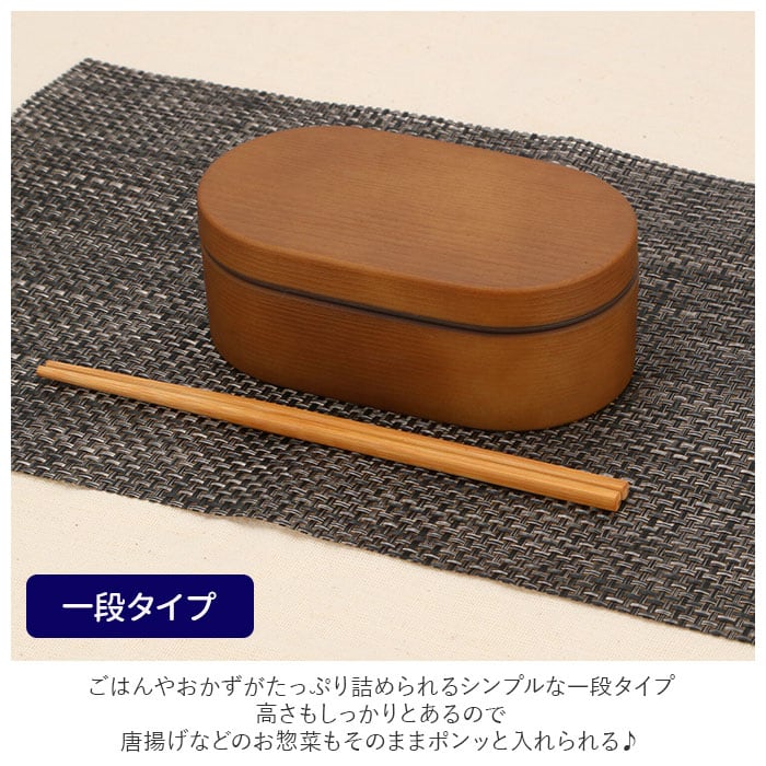 ・ごはんやおかずがたっぷり詰められるシンプルな一段タイプ。高さもしっかりとあるので、唐揚げなどのお惣菜もそのままポンッと入れられる♪