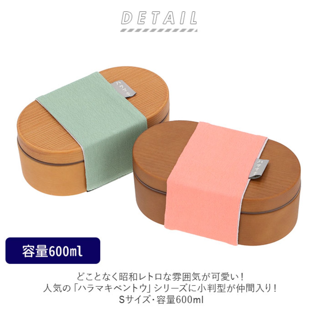 ・どことなく昭和レトロな雰囲気が可愛い!人気の「ハラマキベントウ」シリーズに小判型が仲間入り!Sサイズ・容量600ml。