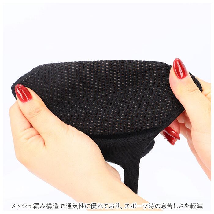 ・メッシュ編み構造で通気性に優れており、スポーツ時の息苦しさを軽減。