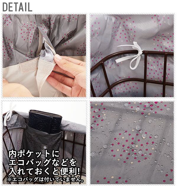 和柄が可愛い♪便利でオシャレな内ポケット。ワイドカゴにも通常カゴにもフィットする伸縮式自転車前カゴカバー です。