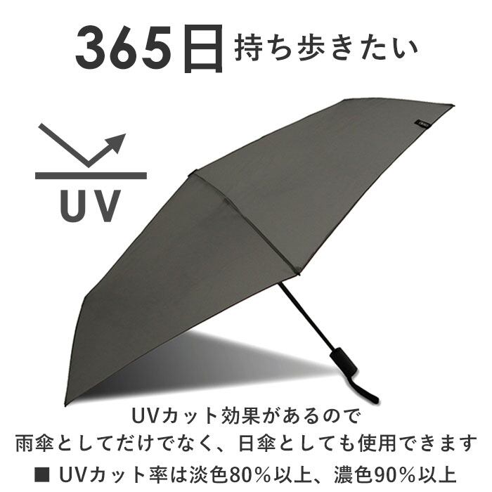 ・アクリルコーティング加工を施した傘生地で、紫外線を効果的にカット!淡色生地で80%以上・濃色生地で90%以上のUVカット率を実現し、雨傘としてだけでなく日傘としても使用できる晴雨兼用タイプ。