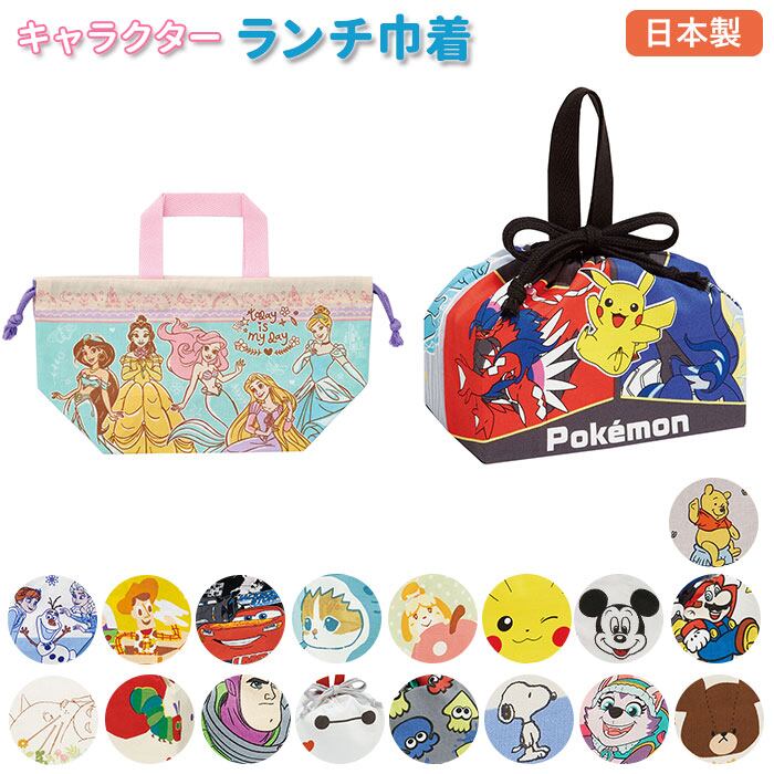 ・人気のキャラクターが大集合!キャラクターの絵柄がかわいい、ランチ巾着。