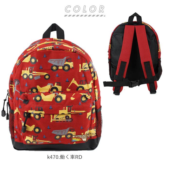 ・軽くて丈夫なキャンバス生地を使用。乗り物がたくさんプリントされた、カラフルなキッズデイパック