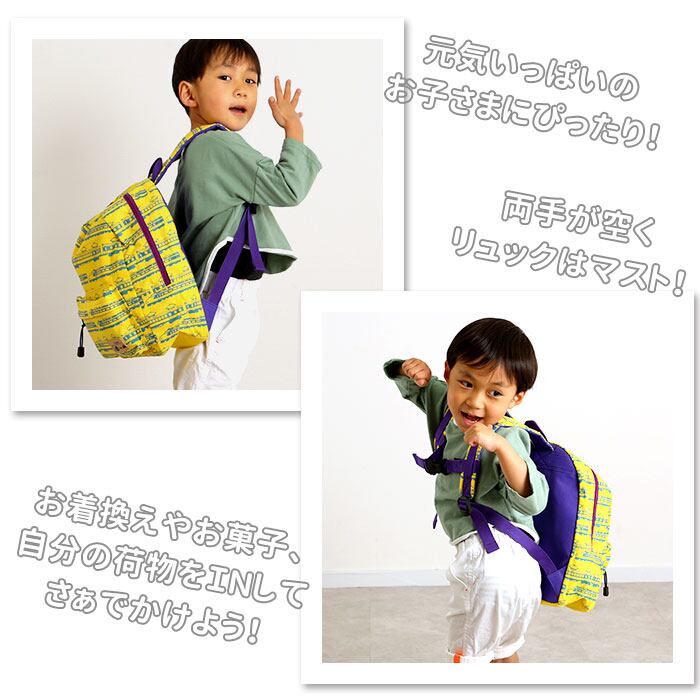 ・元気なお子様にぴったりのポップな柄。通園や遠足はもちろん、普段のお出かけバッグにもオススメ!