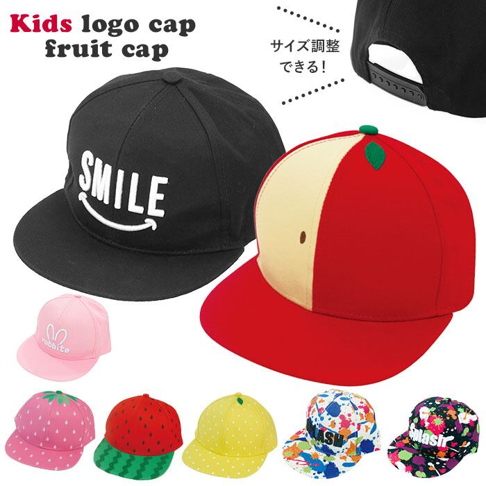 キャップ キッズ おしゃれ 通販 帽子 男子 女子 園児 ぼうし 子供 ハット フルーツキャップ ロゴキャップ いちご ピンク すいか 赤 りんご アップル レモン 黄色 キッズサイズ 調整可能 プレゼント 入園準備 うさぎ
