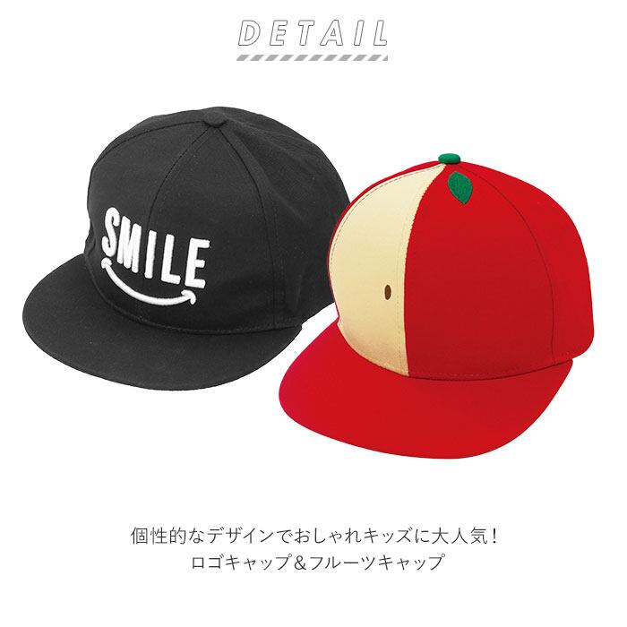 ・個性的なデザインで、おしゃれキッズに大人気!キッズ用ロゴキャップ&フルーツキャップ。