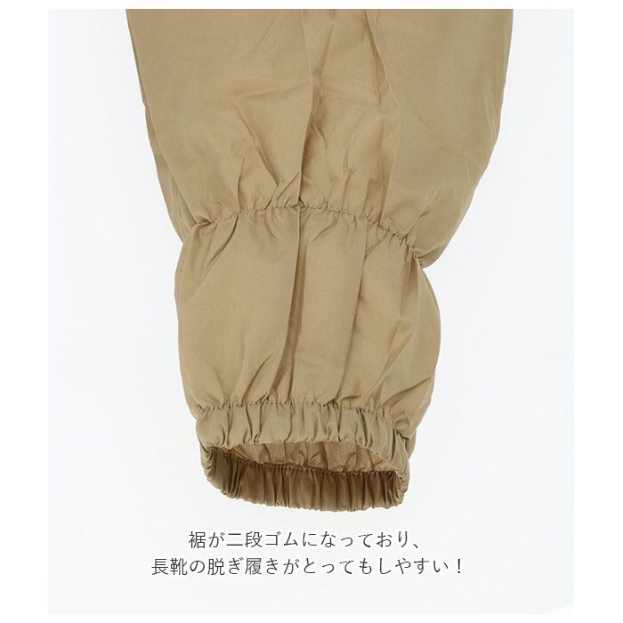 ・裾が二段ゴムになっており、長靴の脱ぎ履きがとってもしやすい!