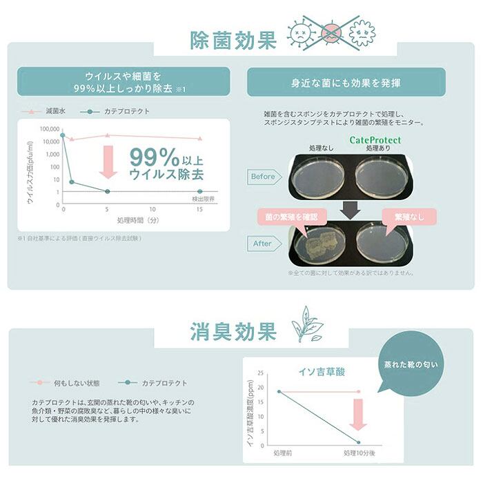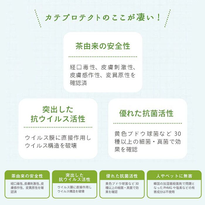 ・※「カテプロテクト」は大阪大学産業科学研究所との共同研究で開発された天然カテキン由来の抗菌・抗ウイルス技術です。