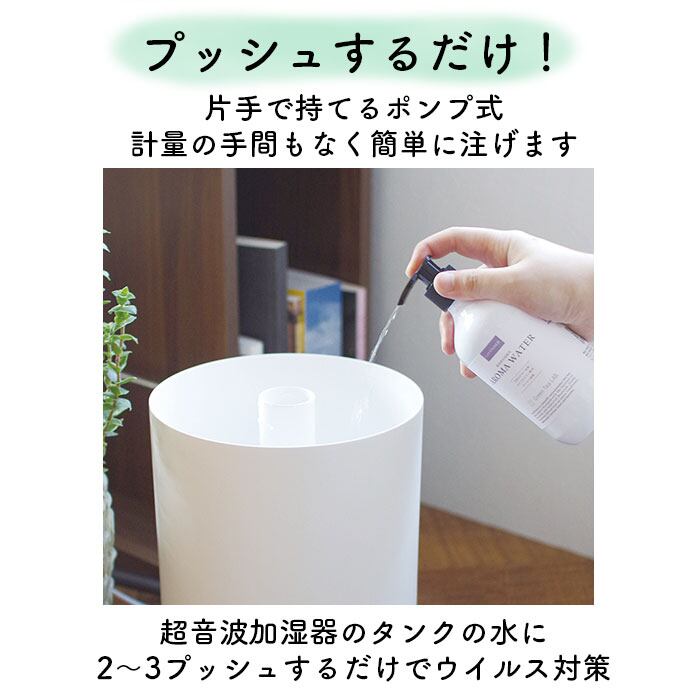 ・超音波加湿器のタンクの水に2〜3プッシュするだけで、ウイルス対策も、癒しの空間づくりも可能に♪