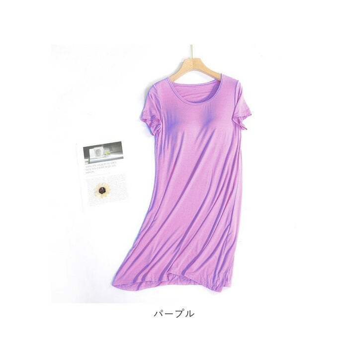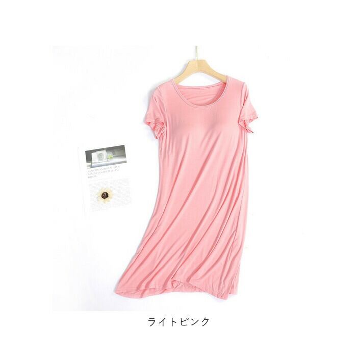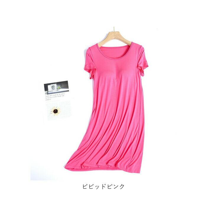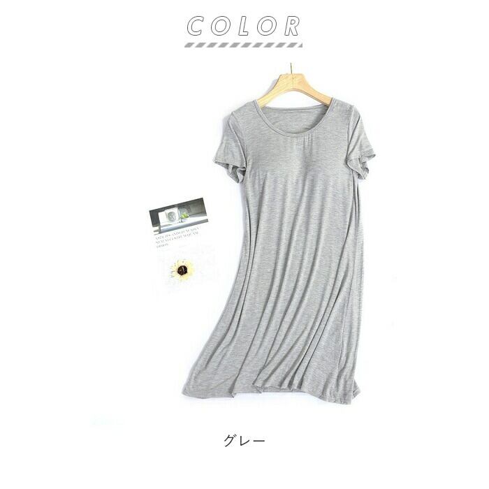 カップ付き ルームウェア 通販 半袖 ロング ワンピース ブラつき インナー パジャマ レディース ひざ下 シンプル 大きいサイズ マタニティ 無地 かわいい リラックス 外出