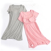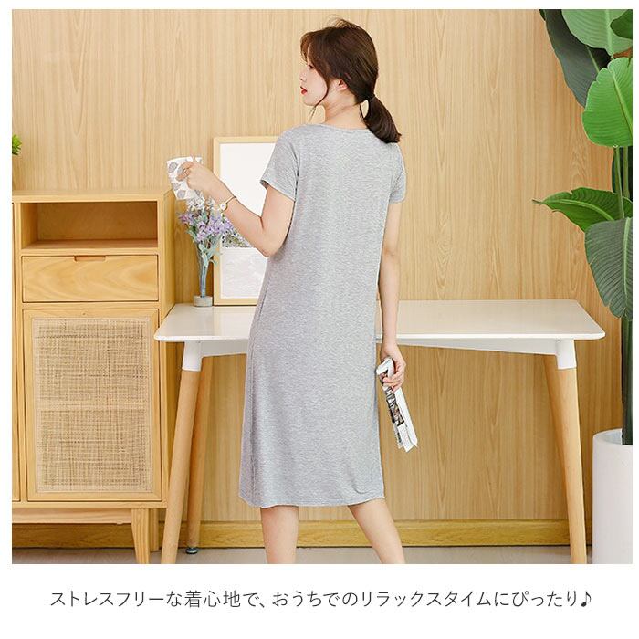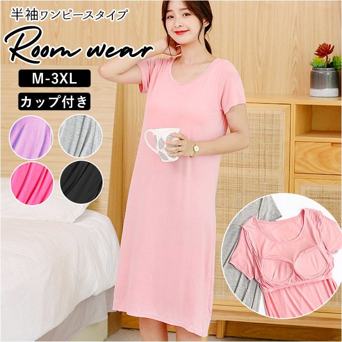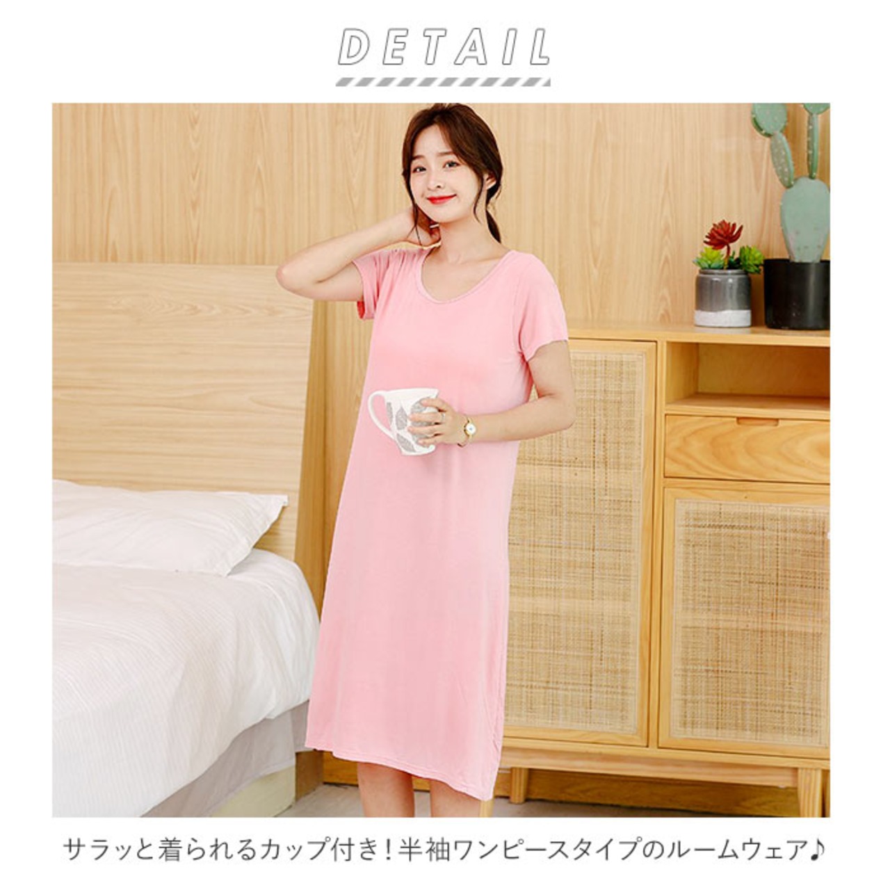 ・サラッと着られるカップ付き!半袖ワンピースタイプのルームウェア♪
