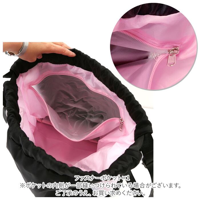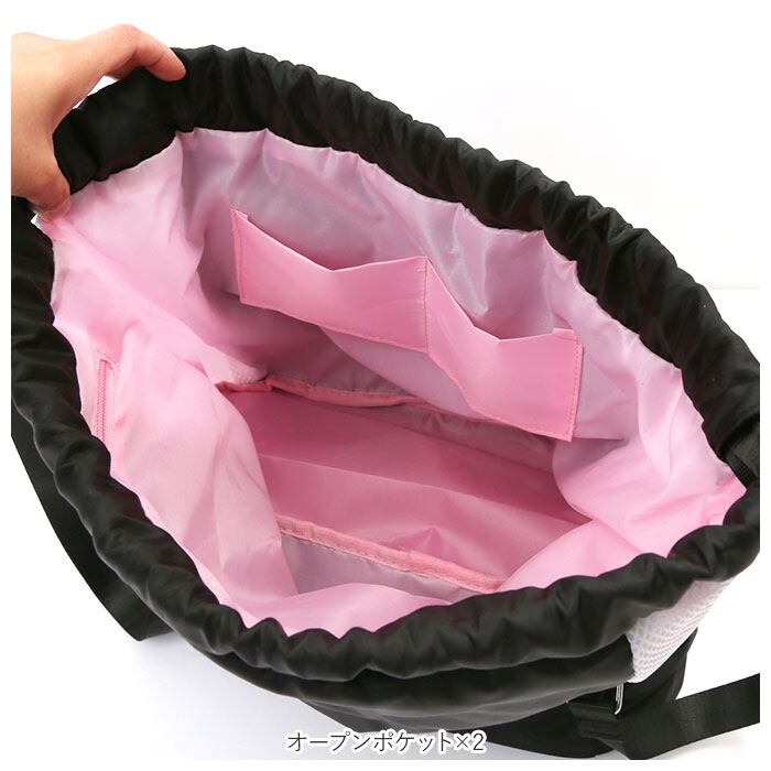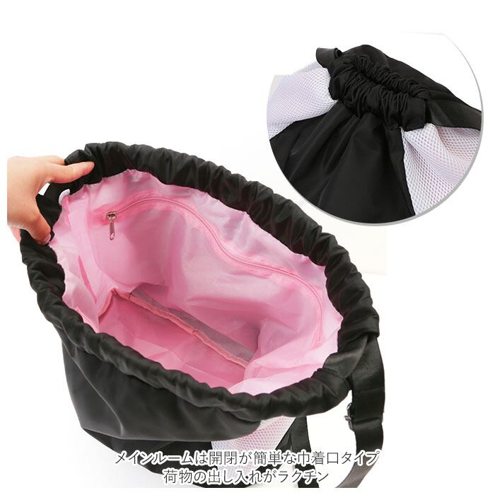 ・メインルームは開閉が簡単な巾着口タイプ。荷物の出し入れがラクチン。