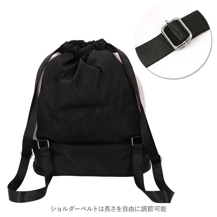 ・ナップサック型で気軽に背負えるから普段使いにも使えるアイテム。