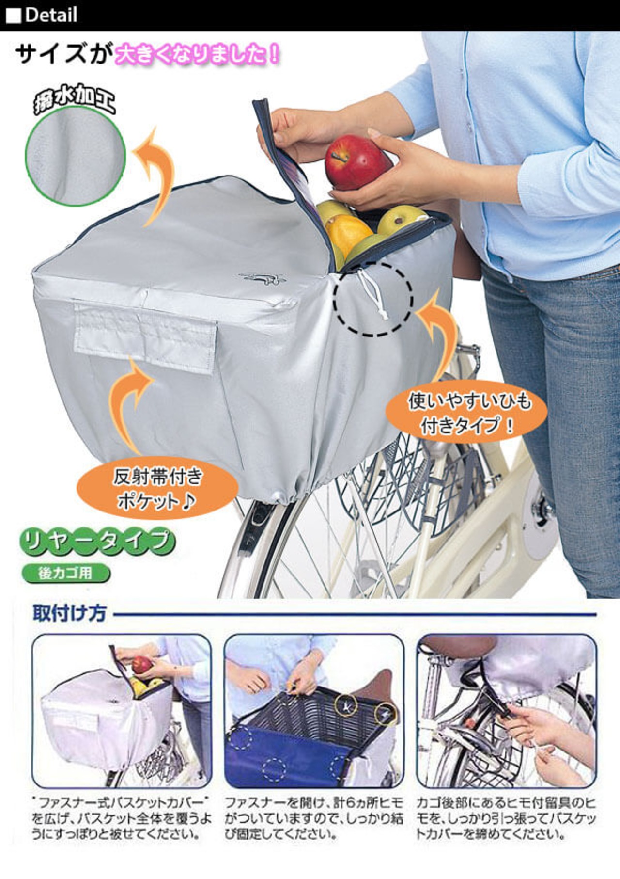 後カゴ用のバスケットカバーデラックスがサイズが大きくなって登場!