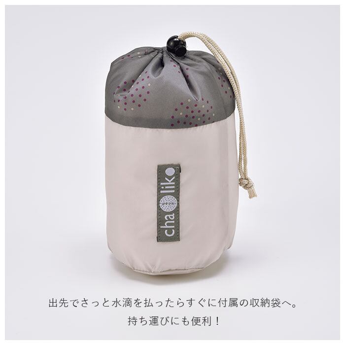 ・出先でさっと水滴を払ったらすぐに付属の収納袋へ。持ち運びにも便利!(※)