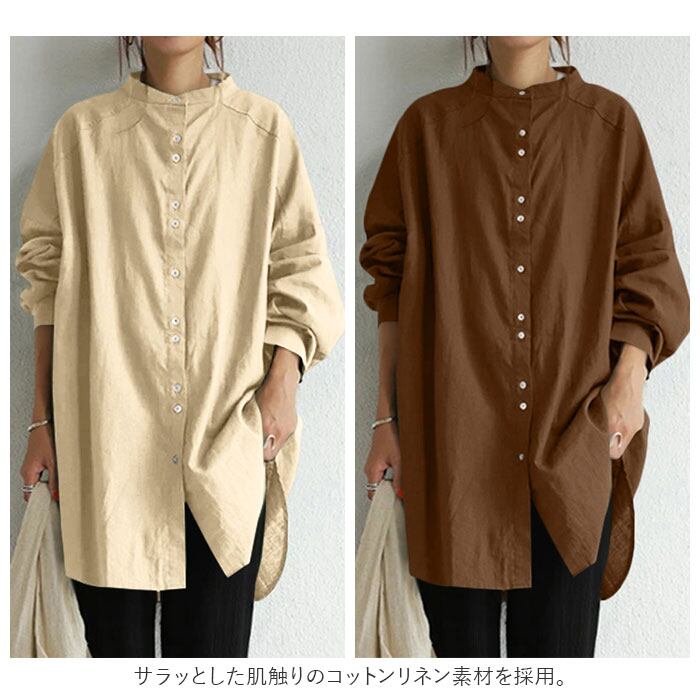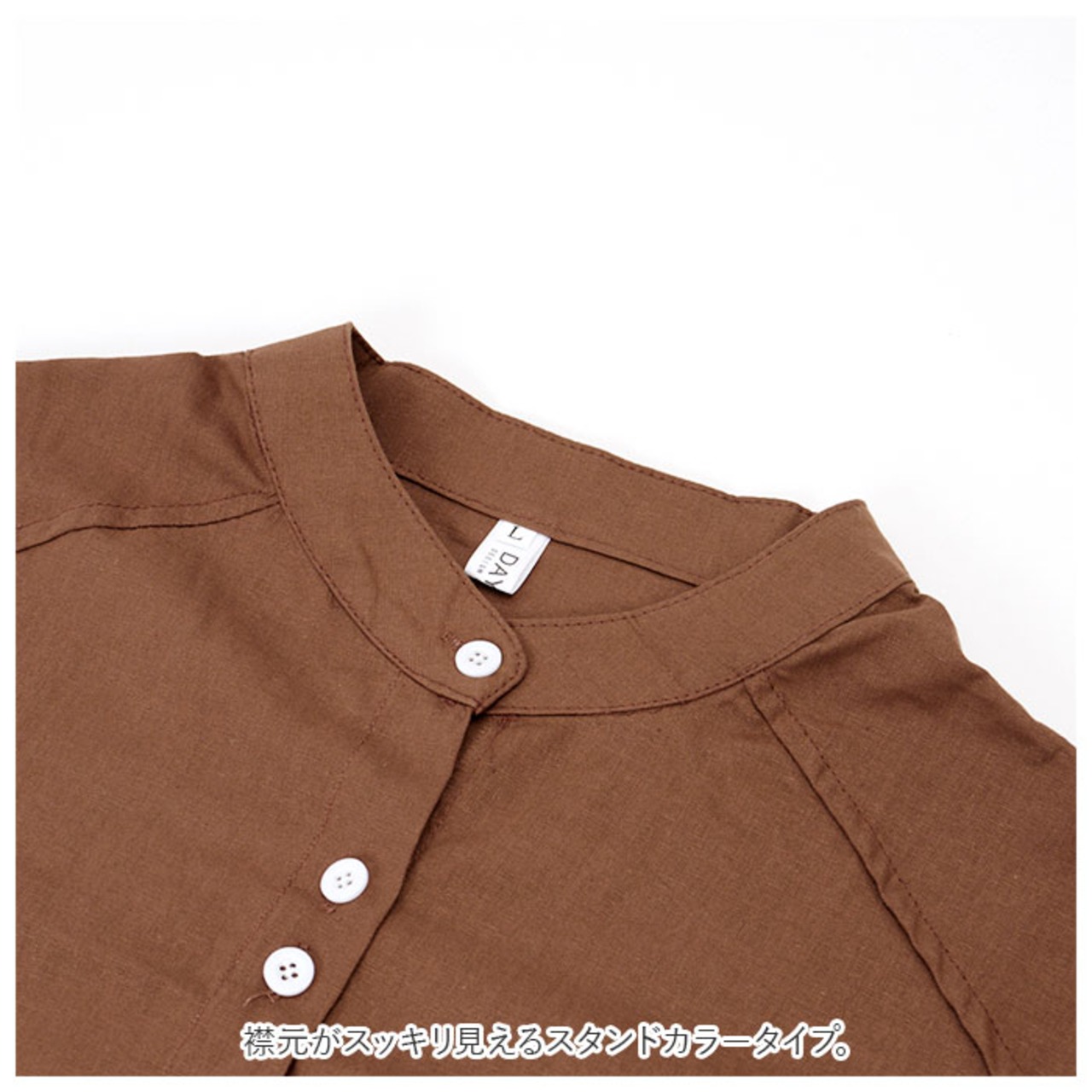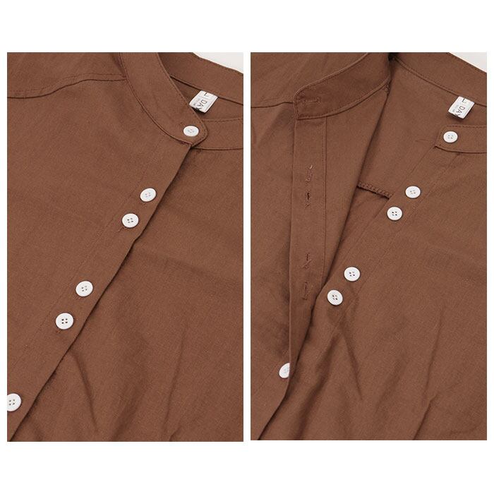 ・襟元がスッキリ見えるスタンドカラータイプ。