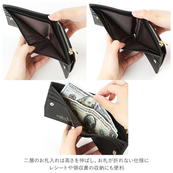 ・二層のお札入れは高さを伸ばし、お札が折れない仕様に。レシートや領収書の収納にも便利。
