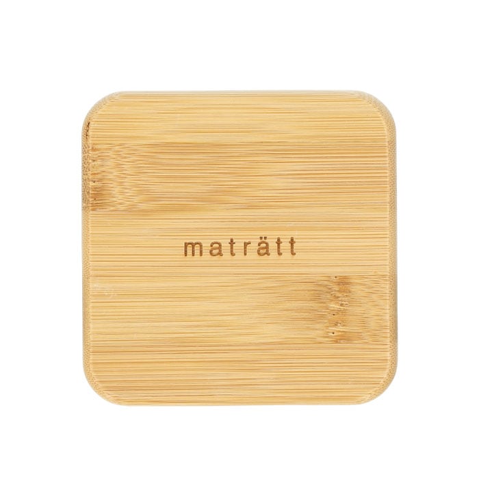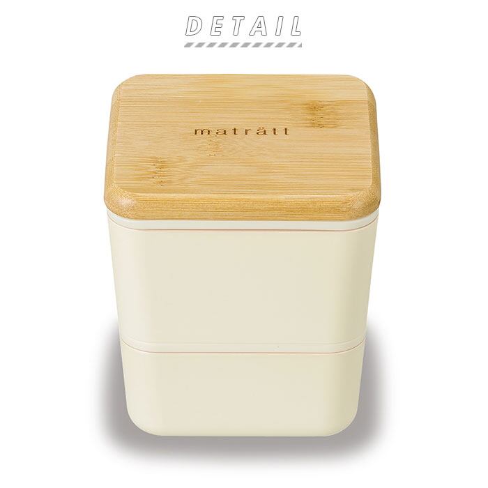 ・ランチボックスのフタには柔らかに削りだした天然竹素材を使用し、matrattのロゴをワンポイントに刻印したナチュラルデザイン。