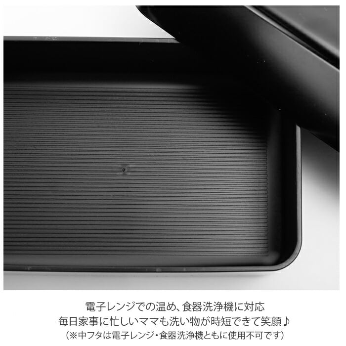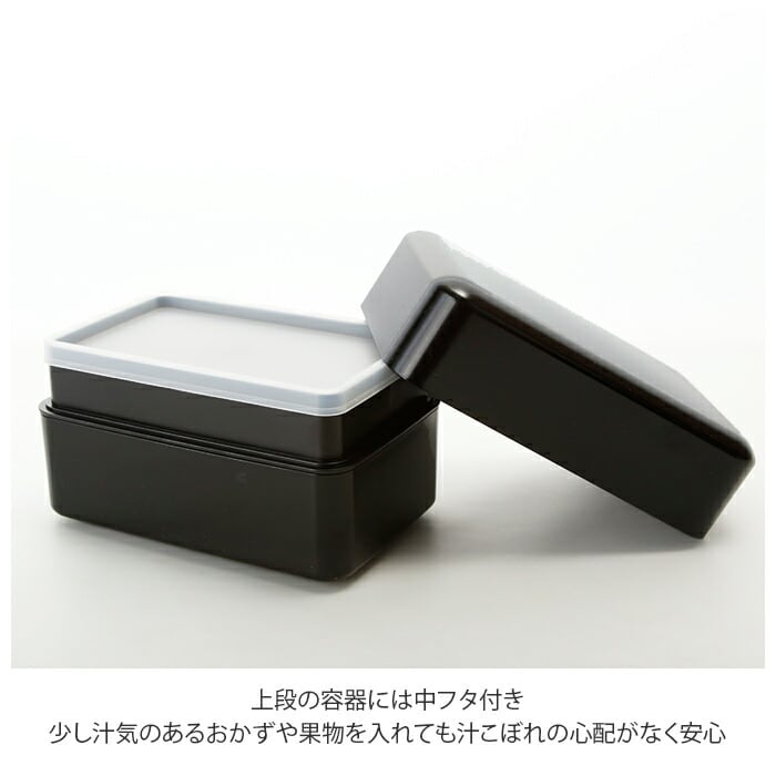・上段の容器には中フタ付きで、少し汁気のあるおかずや果物を入れても汁こぼれの心配がなく安心。