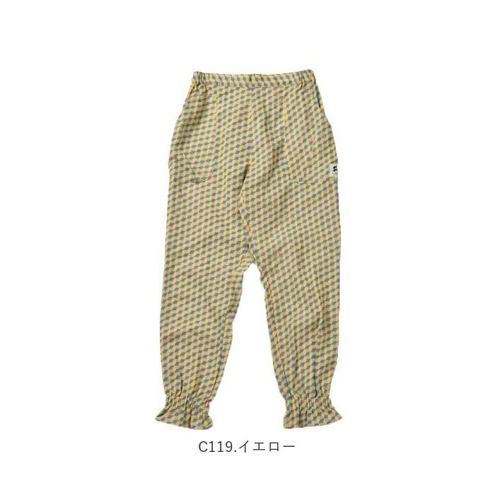 ・ウエストは調節ヒモつきの3/4ゴム仕様、すっきりとしたシルエットなのに着心地はゆったり。