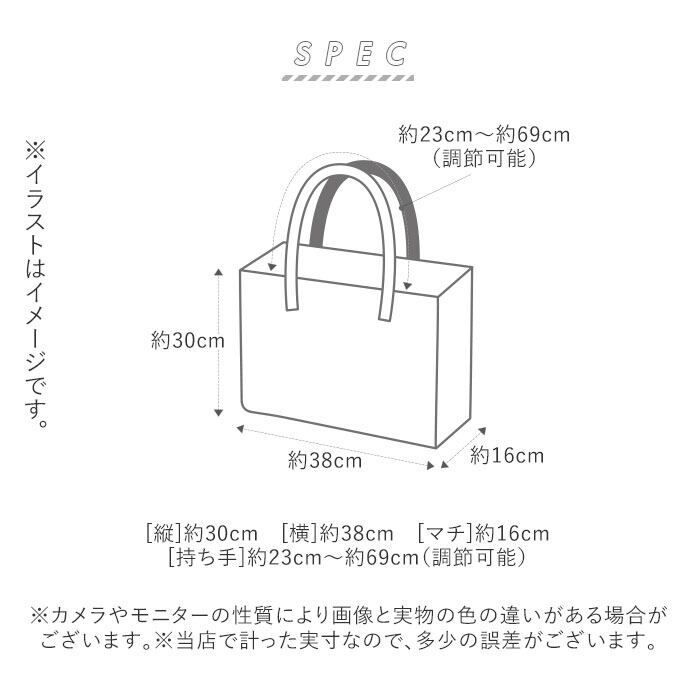 [縦]約30cm [横]約38cm [マチ]約16cm [持ち手]約23cm〜約69cm(調節可能)