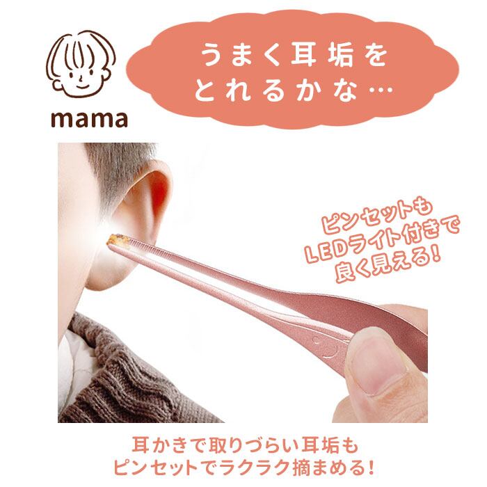 ・お部屋の照明の下では暗くてやりづらかったお子さまのお耳そうじ…。LEDライトが耳の奥まで照らしてくれるから、お耳そうじが驚くほど簡単・安全に!
