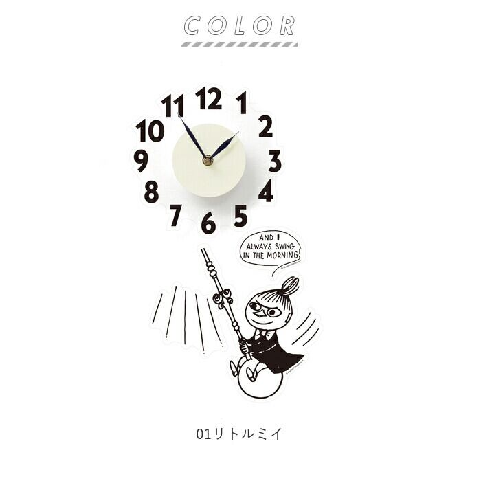 ・振り子に乗ってはしゃぐ「リトルミイ」に、文字盤の数字の影から顔を覗かせる「ムーミン谷の仲間たち」など、ほのぼのキャラクターたちのイラストにお部屋がほっこり優しい雰囲気に。