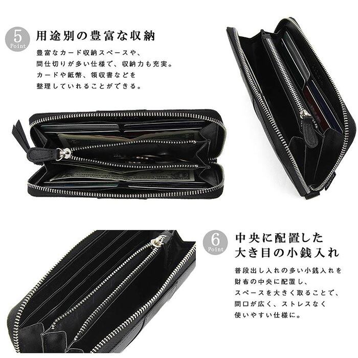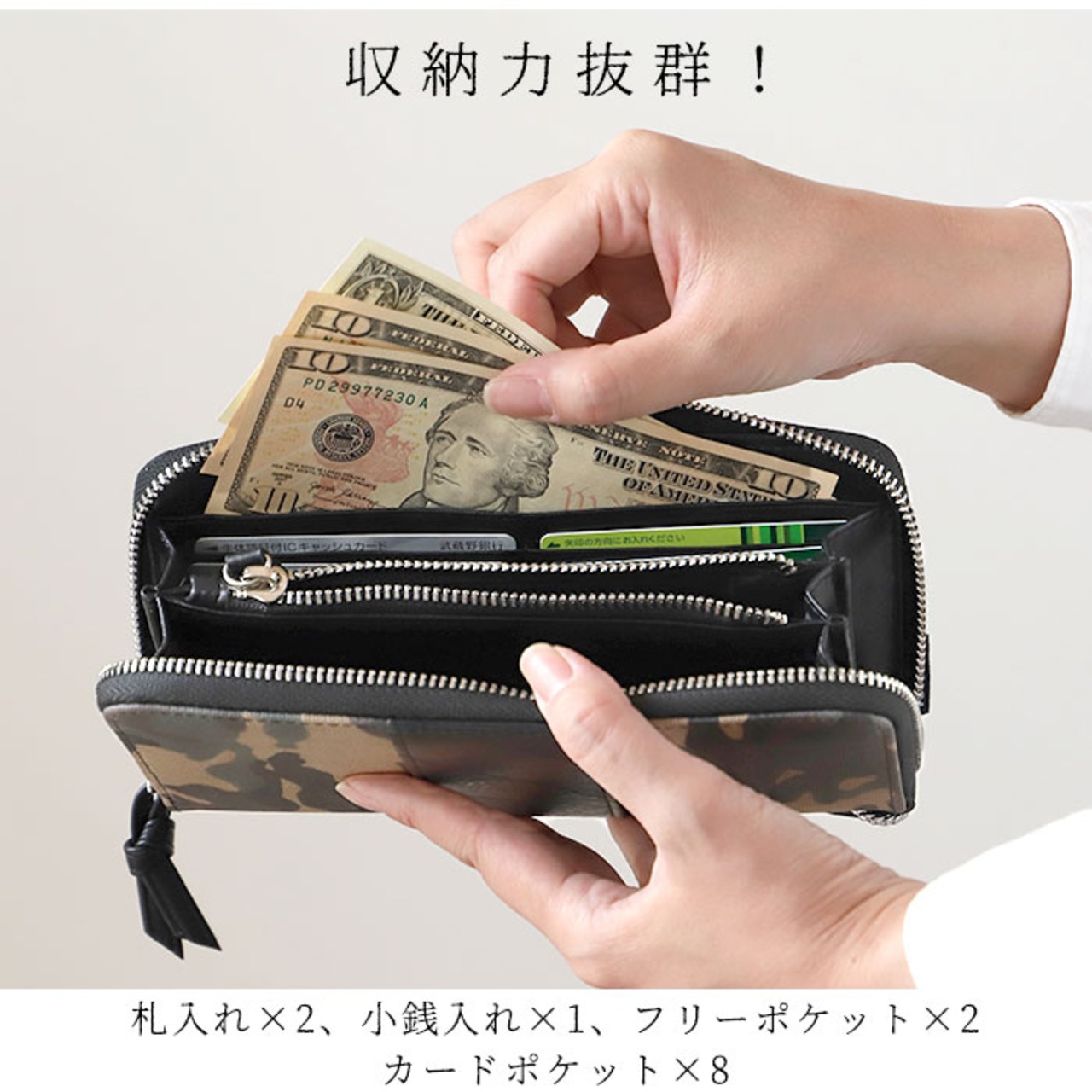 ・豊富なカード収納や、間仕切りが多い仕様で、収納力も充実。お札やレシートの整理がしやすい。