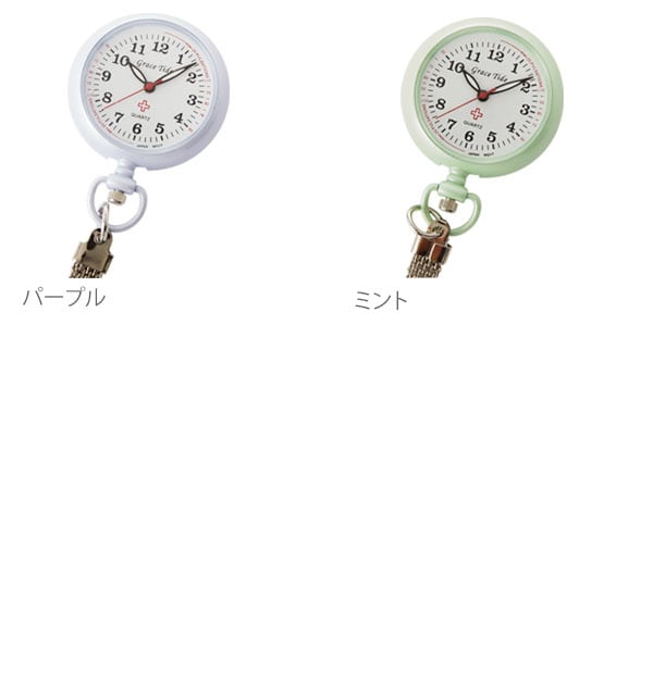医療現場で看護師をはじめ看護関係者が使用しているプロ仕様のナースウォッチ♪文字盤は長針・短針が蓄光素材になっており、暗所でも時間が確認でき、実用性に優れています。 また、チェーンとクリップで衣服のどこにでも取り付けることが可能!医療現場以外でも、食品製造や飲食店など衛生面に気を使う現場や、理容美容業など、腕時計をつけることができない職業の方でも、クリップで簡単に取り付けられるナースウォッチでしたら、常時身につけられるので非常に便利です。金属アレルギーの方や肌が敏感で腕時計が苦手な方にもオススメです♪