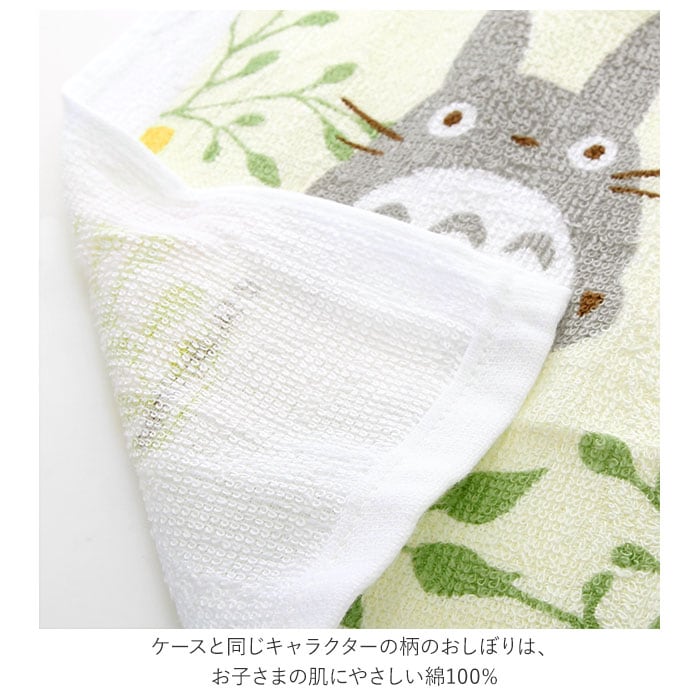 ・ケースと同じキャラクターの柄が楽しいおしぼりは、お子さまの肌にやさしい綿100%。