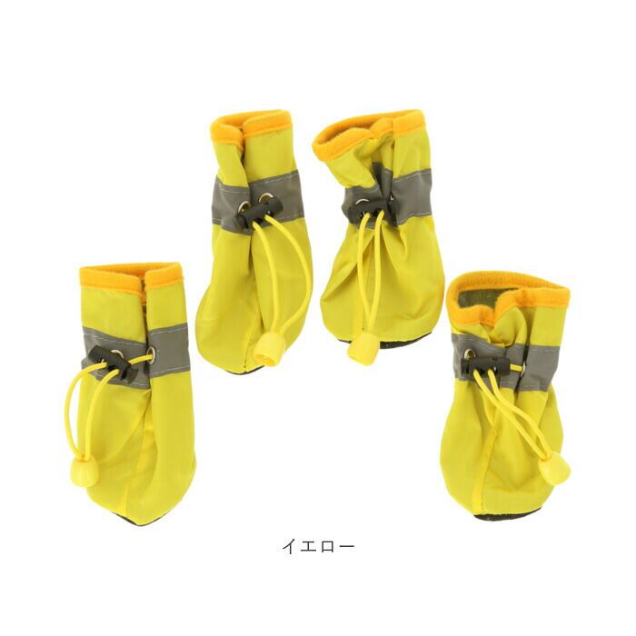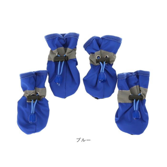 ・表面に撥水性のある素材を使用しているので、雨の日も足を汚さずお散歩できる。さらに夜のお散歩も安心の反射テープ付き。