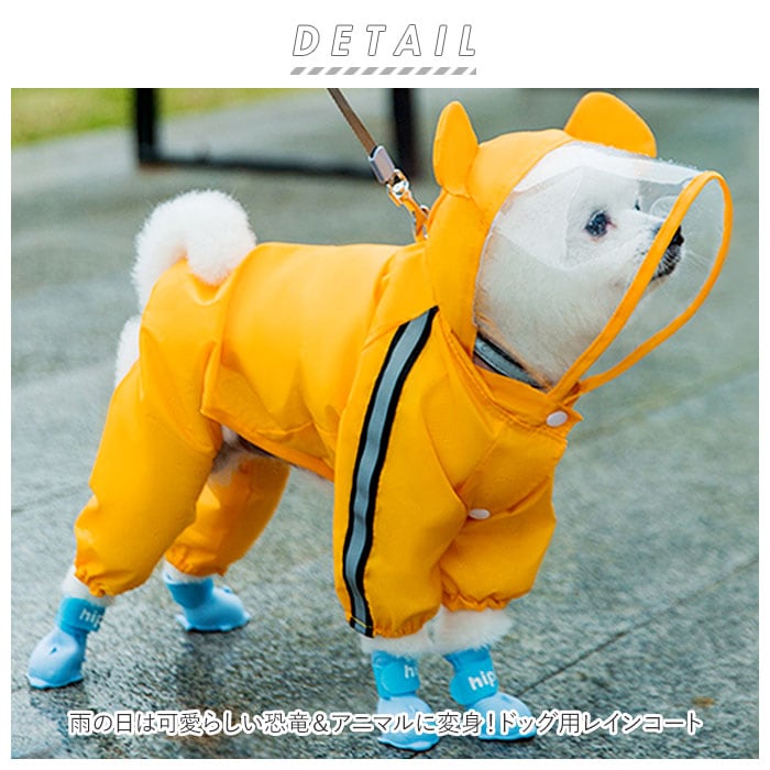 ・雨の日は可愛らしい恐竜&アニマルに変身!ドッグ用レインコート。