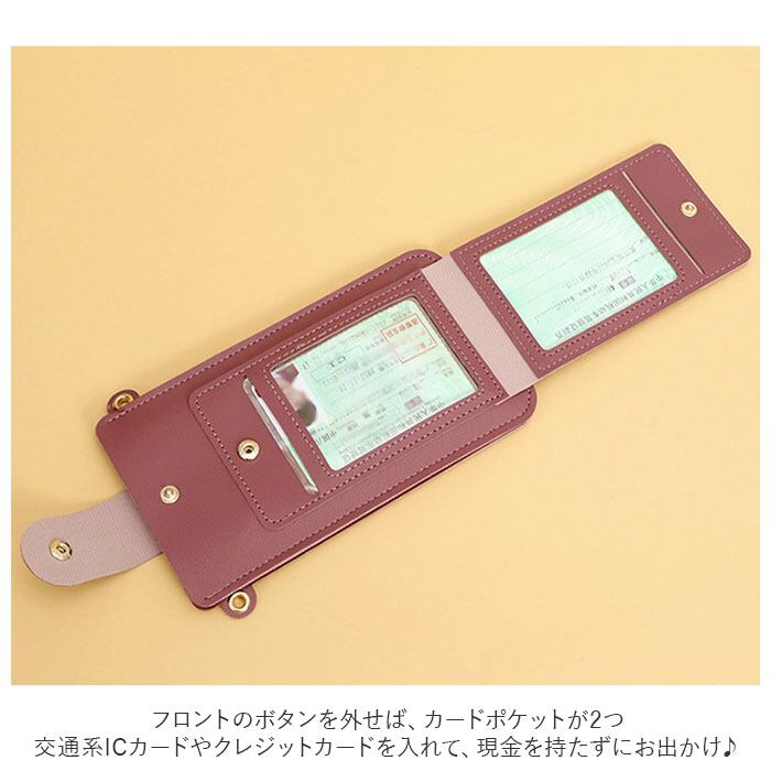 ・フロントのボタンを外せば、カードポケットが2つ。交通系ICカードやクレジットカードを入れて、現金を持たずにお出かけ♪