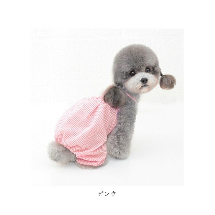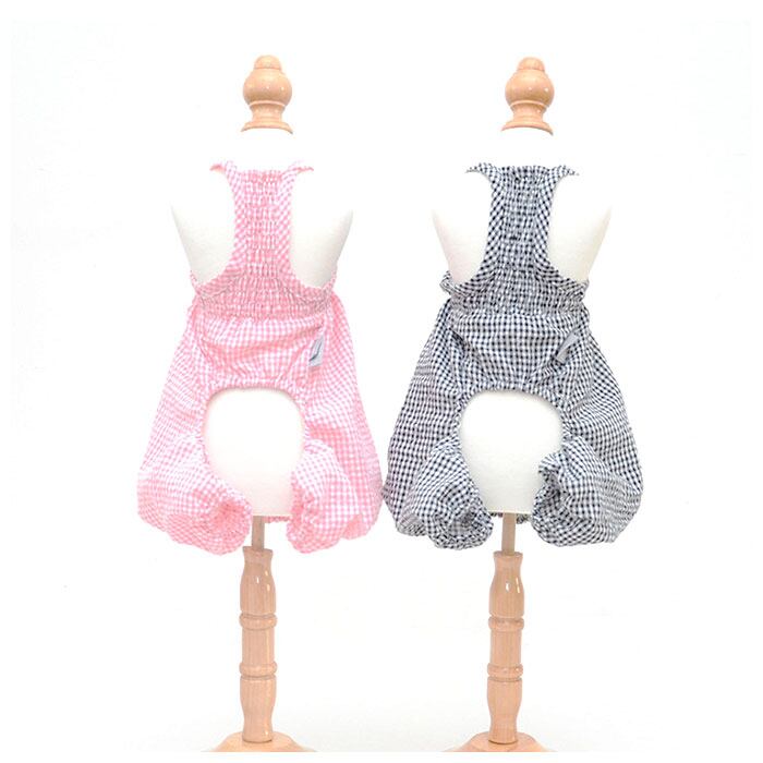 ・優しい色合いのギンガムチェックがお散歩にピッタリ♪カジュアルで可愛らしいドッグ用オーバーオールが新登場!