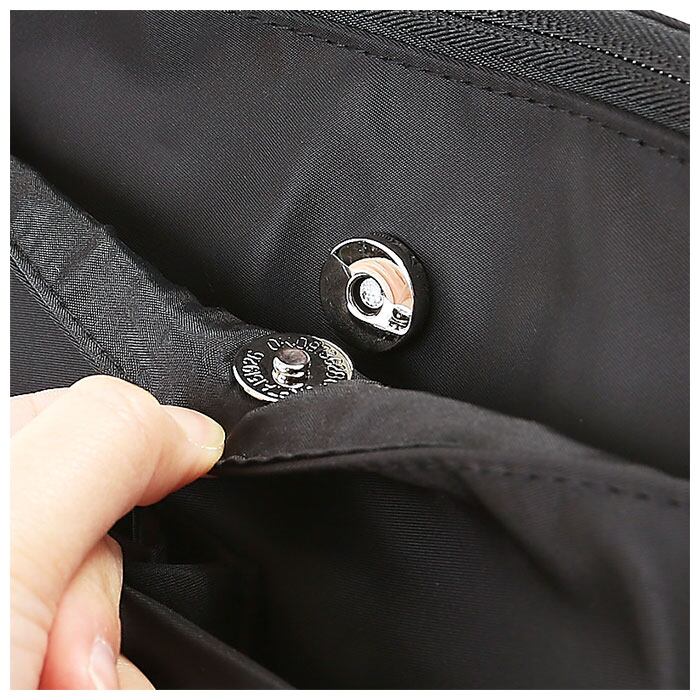 ・バッグ外側前面にはマグネット式オープンポケット×1、オープンポケット×2があり、パスケースやハンカチなど頻繁に使用する小物がサッと取り出せて便利。
