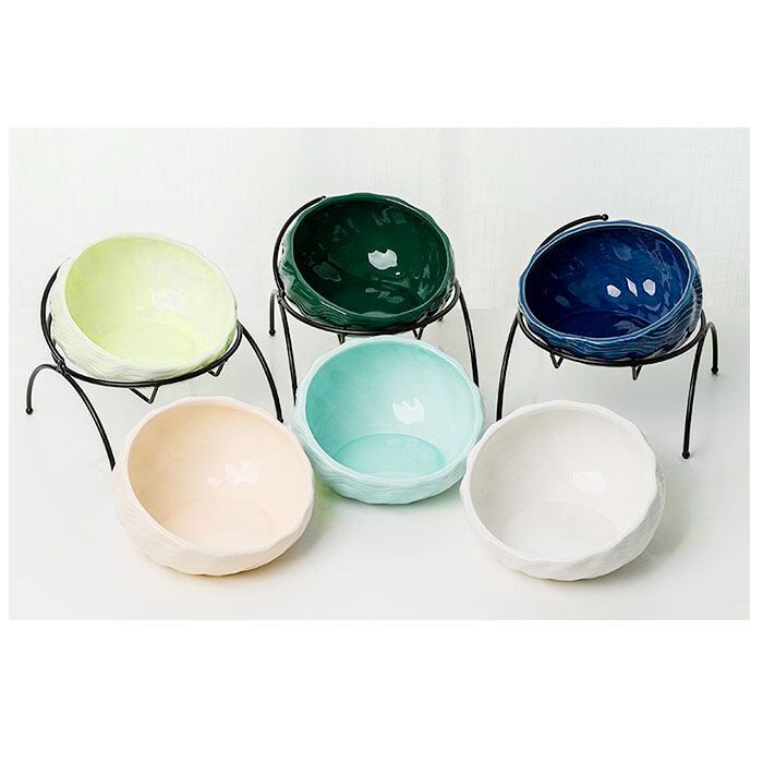 ・スタンドにボウルを置いた時に食べやすいよう設計された、角度がポイント♪前かがみの姿勢でフードを食べているワンちゃん・ネコちゃんの負担を軽減!