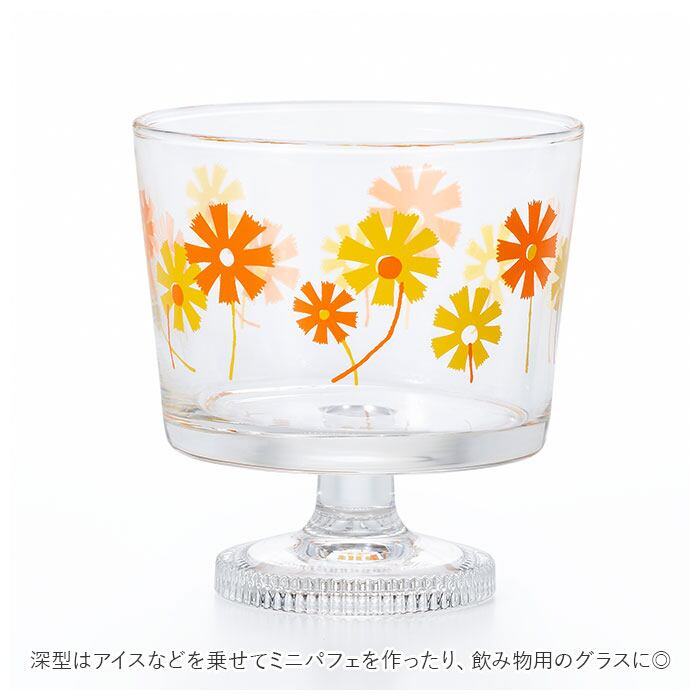 ・深型はアイスなどを乗せてミニパフェを作ったり、飲み物用のグラスとして、浅型はプリンやケーキを乗せるのにぴったり。